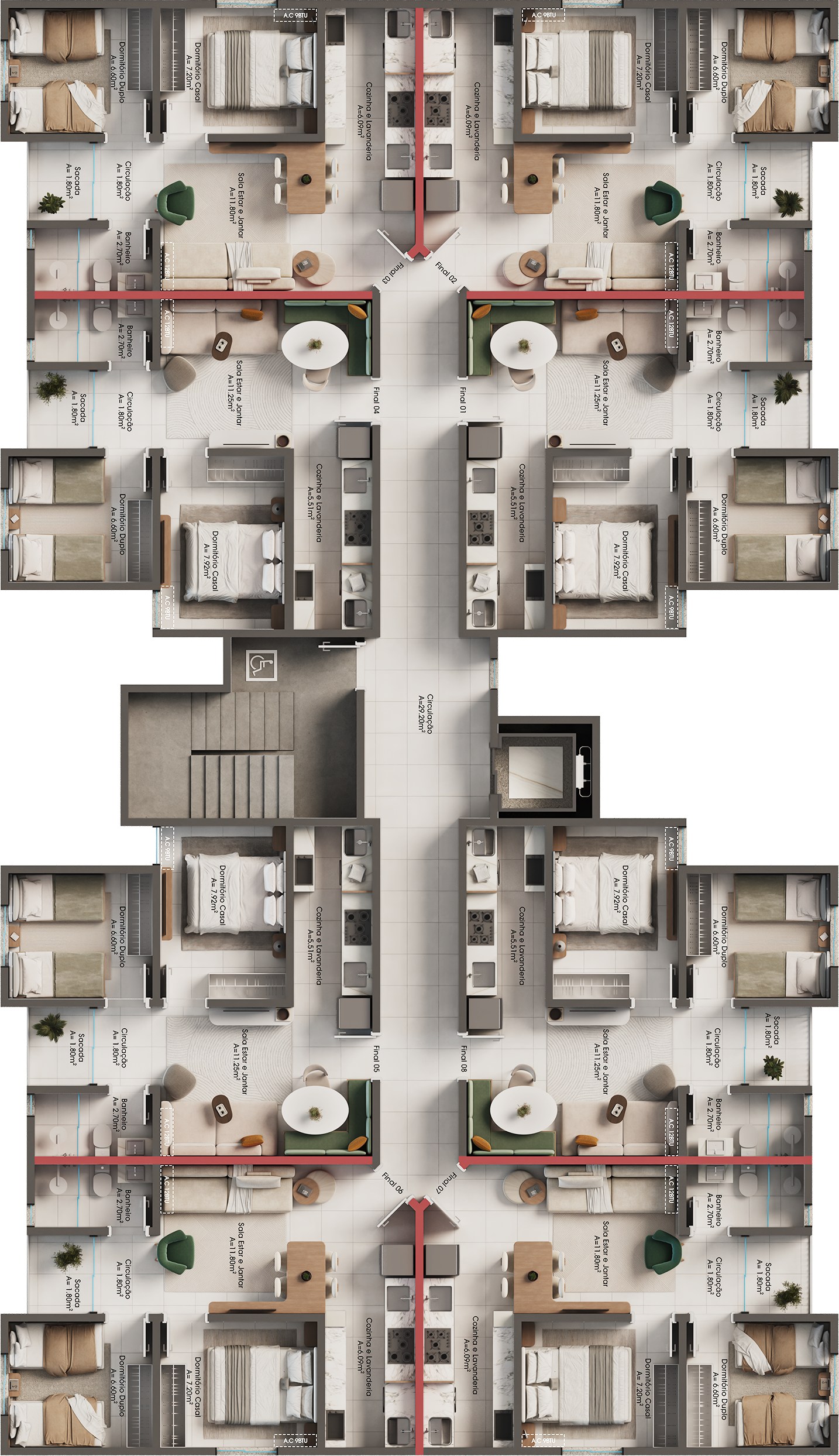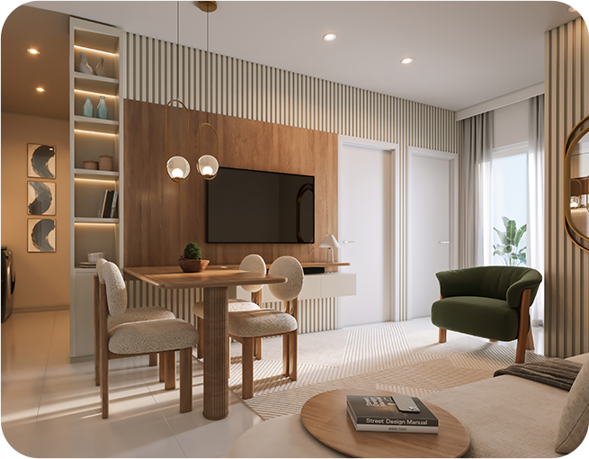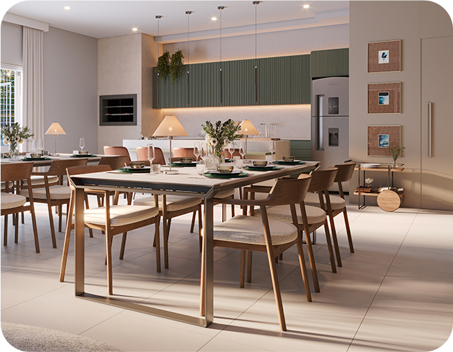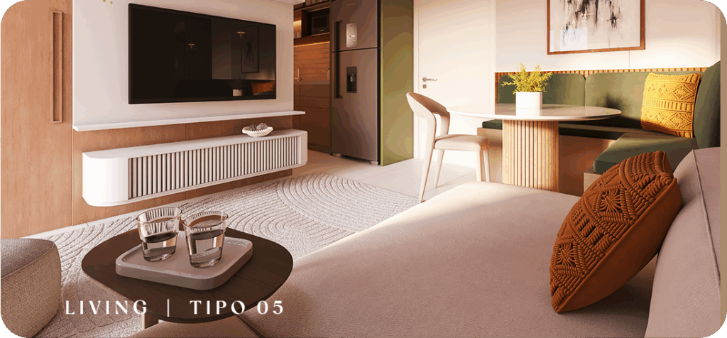 Aqui, você não precisa abrir mão do conforto e das comodidades que a vida moderna oferece. Pelo contrário, desfrutará de um espaço que integra perfeitamente elementos biofílicos, trazendo a natureza para dentro de casa,